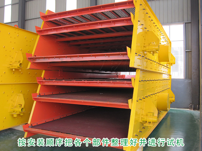 安裝開始時把基礎(chǔ)找平,接著按照支承或吊掛裝置,圓形振動篩的安裝圖,按順序把各個部件整理好,彈簧的裝入可按標(biāo)記的試機(jī)進(jìn)行選配。