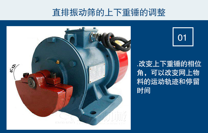 1.改變上下重錘的相位角,可以改變網(wǎng)上物料的運(yùn)動軌跡和停留時(shí)間。為是篩機(jī)適應(yīng)各種物料所需求的分離狀態(tài),如物料的分布,處理量、過網(wǎng)率等各種變化,應(yīng)將它調(diào)整到最佳狀態(tài)。