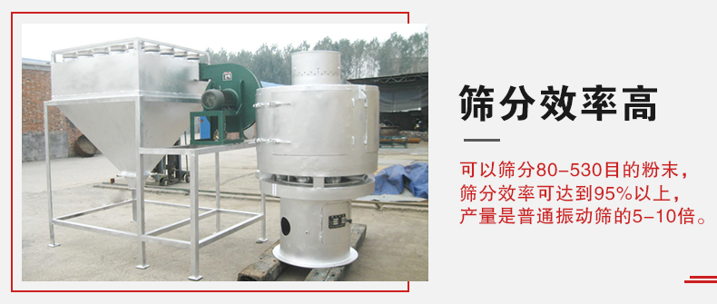 1、可以篩分80-530目的粉末,篩分效率可達(dá)到95%以上,產(chǎn)量是普通振動(dòng)篩的5-10倍或更高;